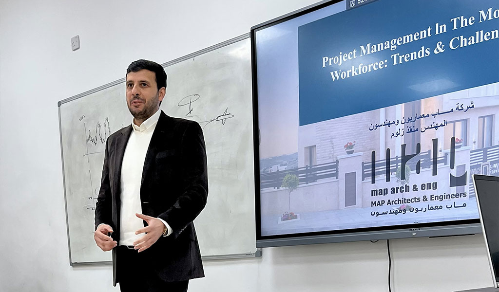 As part of our dedication to academic and community involvement and the development of engineering knowledge, MAP’s CEO Engineer Monqeth Zalloum presented a lecture at Amman Arab University titled “Project Management in the Modern Workforce: Trends & Challenges”, showcasing the essential role of project management in ensuring the success of engineering and administrative projects.